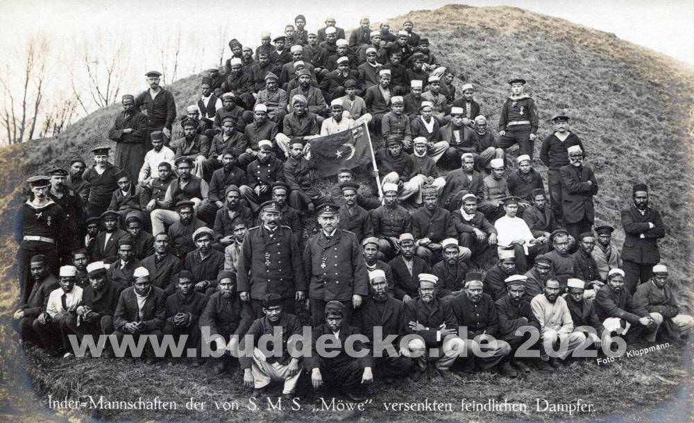 Kriegsgefangene Inder von den versenkten Handelsschiffen