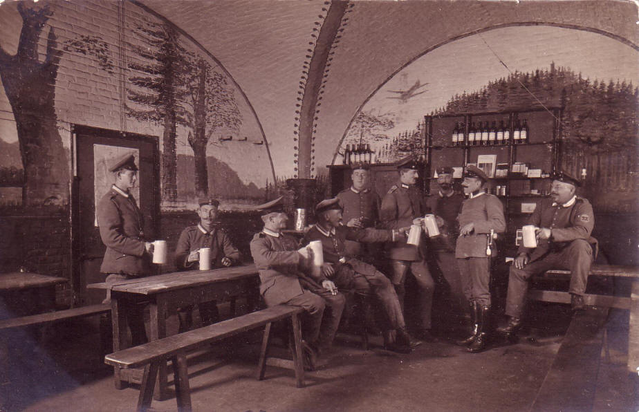 Foto zeigt Mannschaftsdienstgrade im Weinkeller, Wände