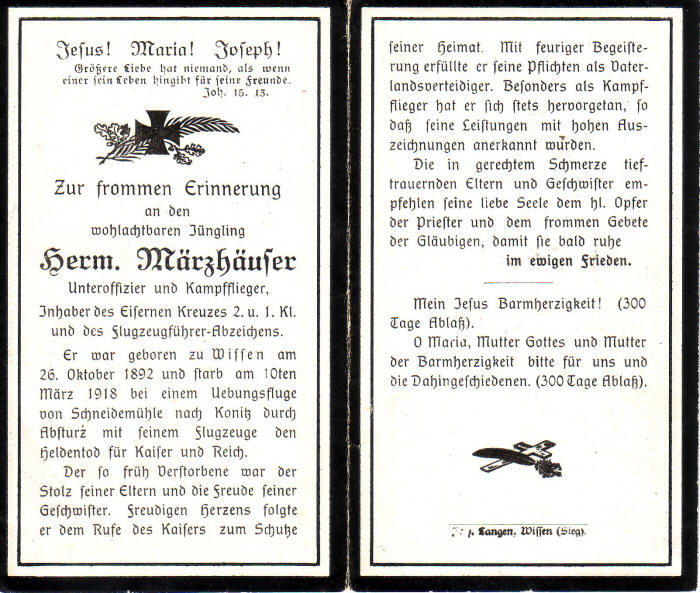 Anfang März 1918 wurde Märzhäuser zur Flieger-Ersatz-Abteilung 2 =
