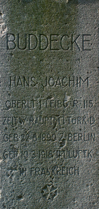 gefallen 10.03.1918 im Luftkampf in Frankreich. Inschrift auf der