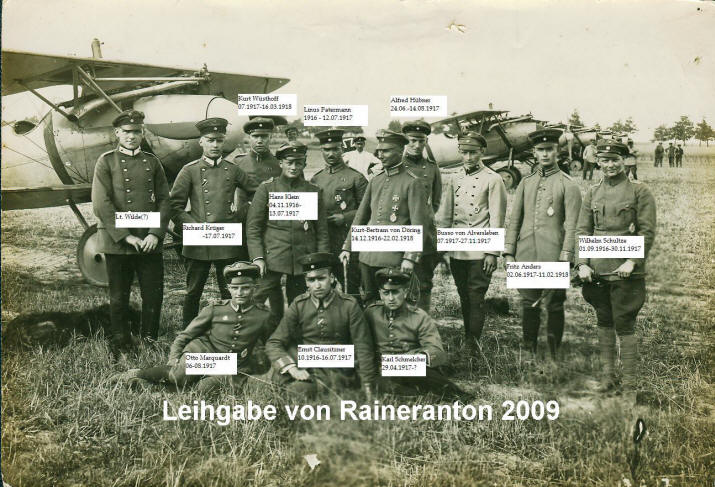 Busso von Alvensleben (dritter von rechts) als Jagdflieger der Jagdstaffel 4 im Juli 1917