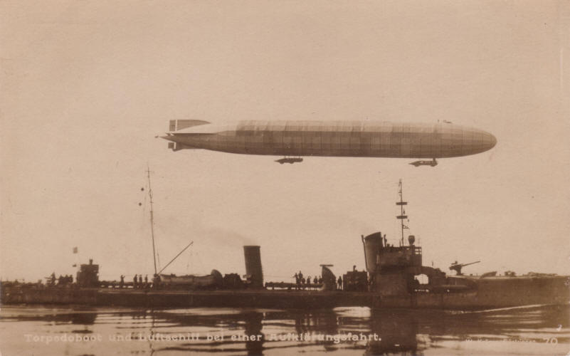 Torpedoboot und Luftschiff L 23 bei einer Aufklärungsfahrt.