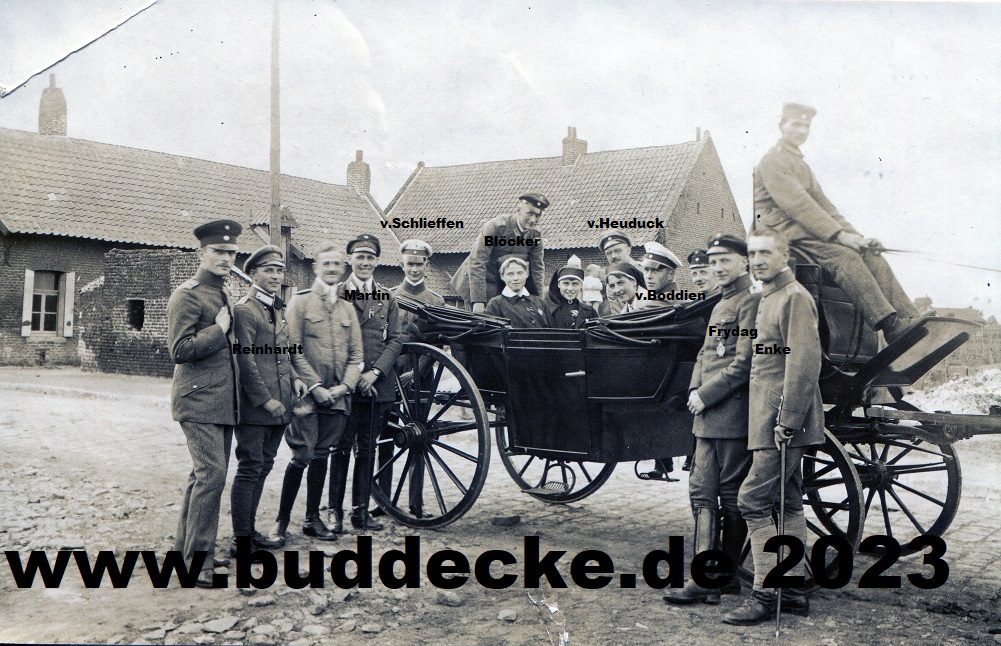 Hornaing im August 1918. Zu sehen sind: Lt. Reinhardt (P), Lt.