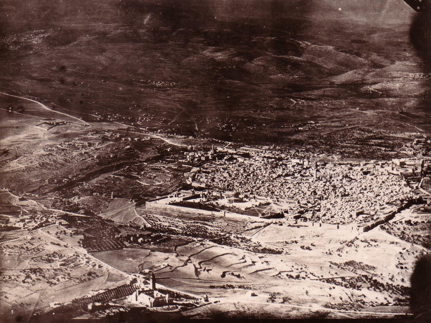 Jerusalem aus der Luft. Gleich hinter der Stadtmauer links bzw. im