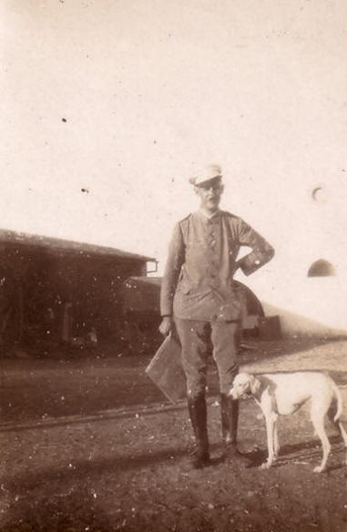 Oberleutnant Veit August Fischer mit seinem Hund in Palästina