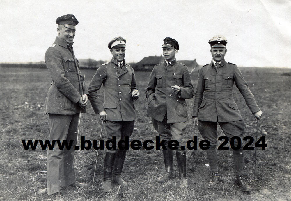 dahinter stehend v. l. n. r.: Lt. Wilhelm Tünnerhoff (P), Lt.