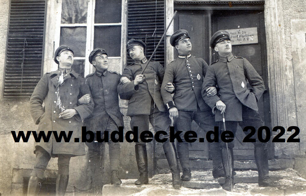 FA (A) 236 vor ihrer Unterkunft. Auf dem Türschild steht "Haus Nr. 36