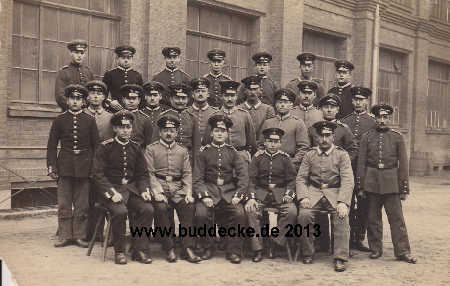 Oben präsentiert sich die 1. Kompanie der FEA 3 zum Weihnachtsfoto 1915.