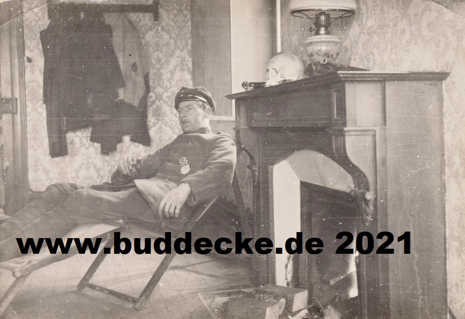 FFA 12. Flugzeugführer erholt sich in seiner Unterkunft. Auf dem Kamin liegt ein Schädel