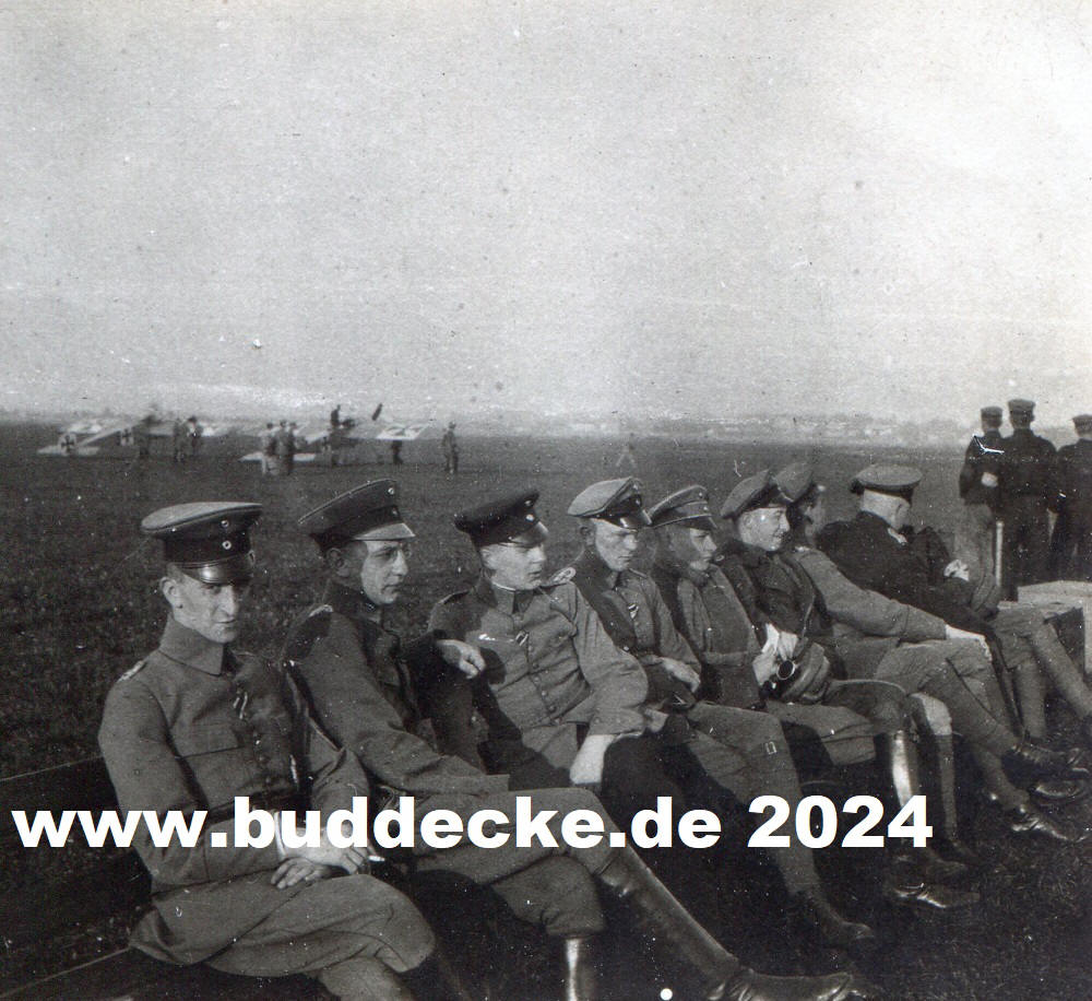 Schloß Saucourt, Piloten und Beobachter genießen die Sonnenstrahlen in