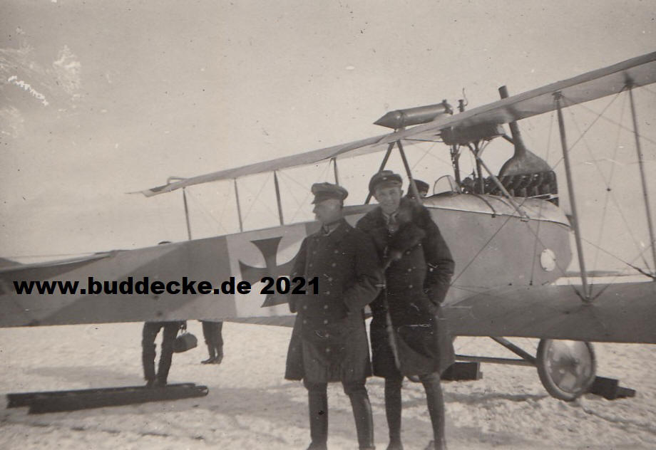 Leutnant Hans Gilg (P) startet mit Oberleutnant Werner Jahns (O) auf Albatros Kampfdoppeldecker