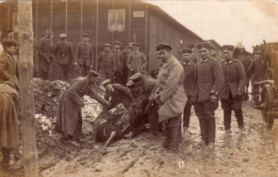 Ein Pferd steckt fest im Schlamm, November