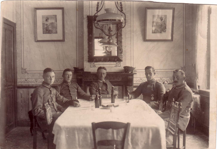 Die Fliegerabteilung (A) 256 im September 1917. Gemütliche Bierrunde von links nach rechts: