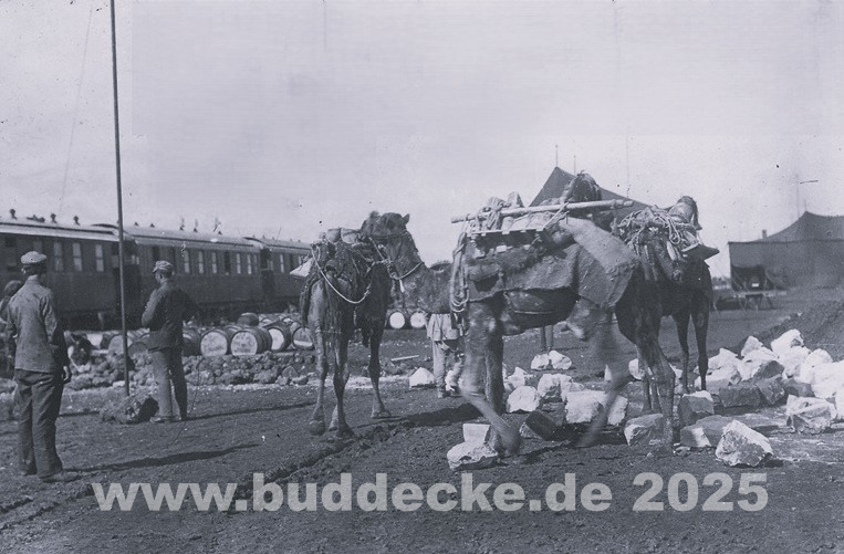 Kriegsjahr 1918, Per Zug und Kamel wird transportiert.