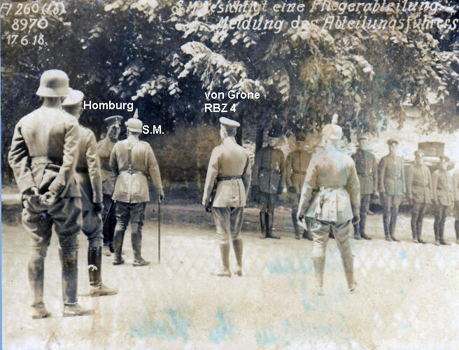 Oberleutnant Erich Homburg, Führer FA(A) 260 Lb begrüßt seine Majestät Kaiser Wilhelm II.