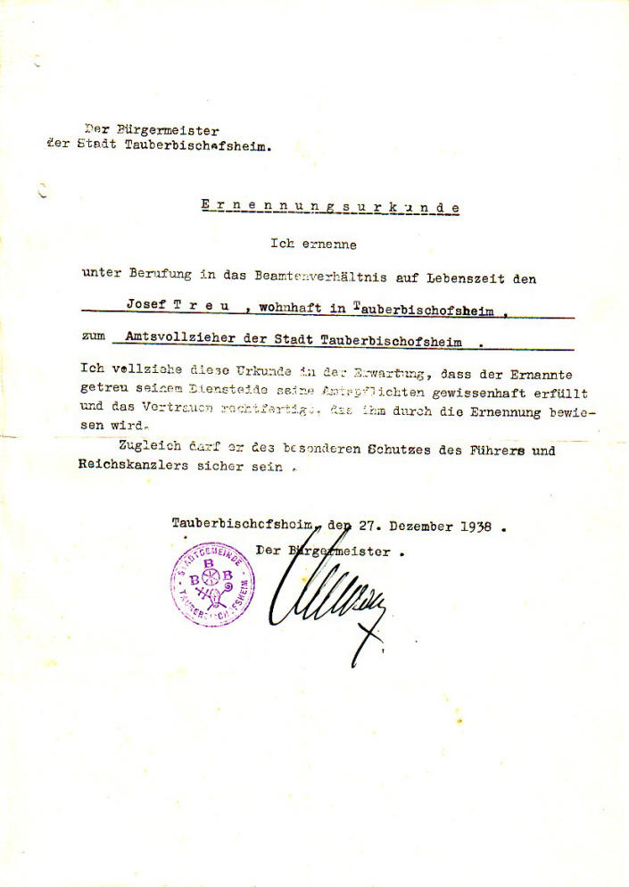 In der Weimarer Republik machte Josef Treu als plichtbewusster