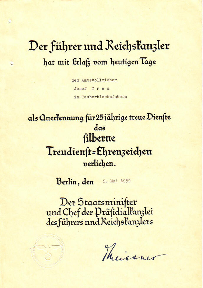 Treudienst-Ehrenzeichens für 25 Jahre treue Dienste (Siehe