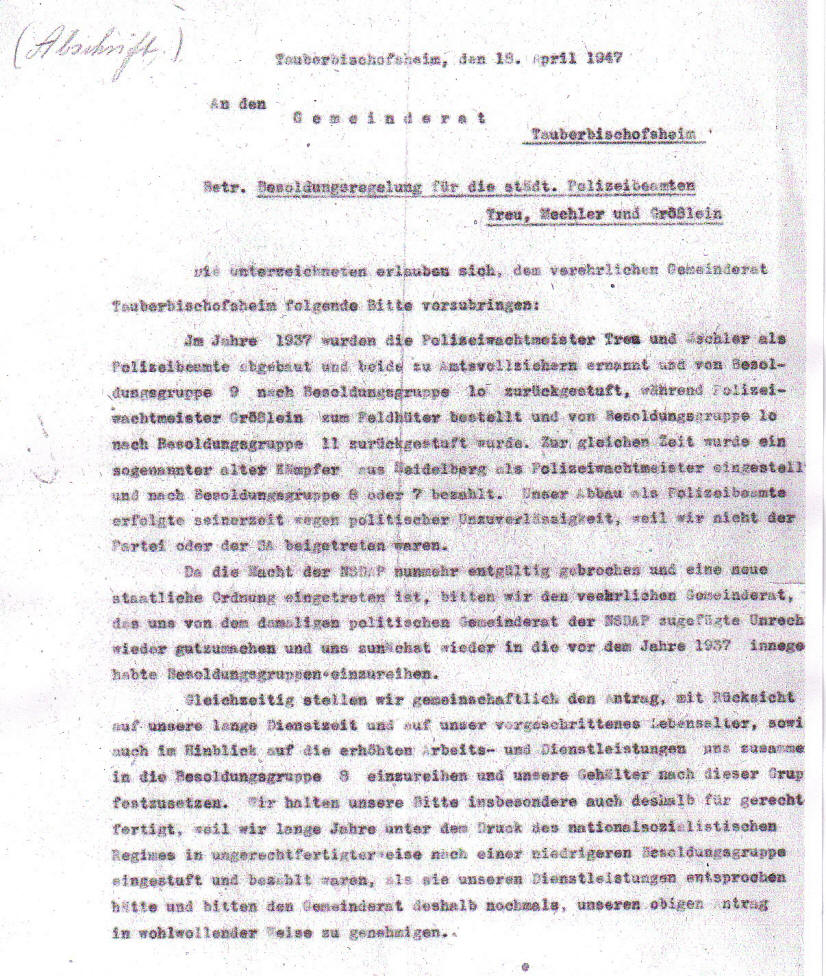 Nach dem 2. Weltkrieg versuchte Josef Treu vergeblich die Rückversetzung