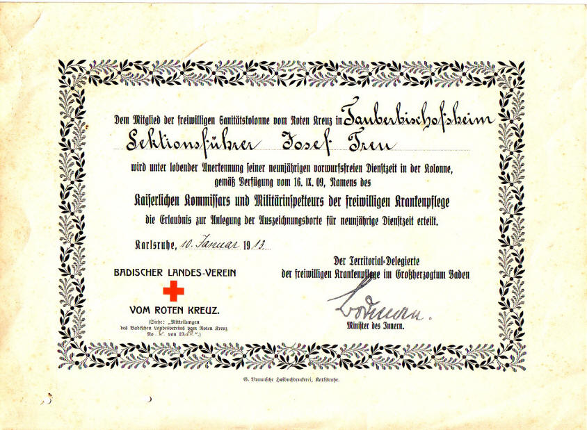 Tauberbischofsheim bei und es wird am 10.01.1913 als Sektionführer die