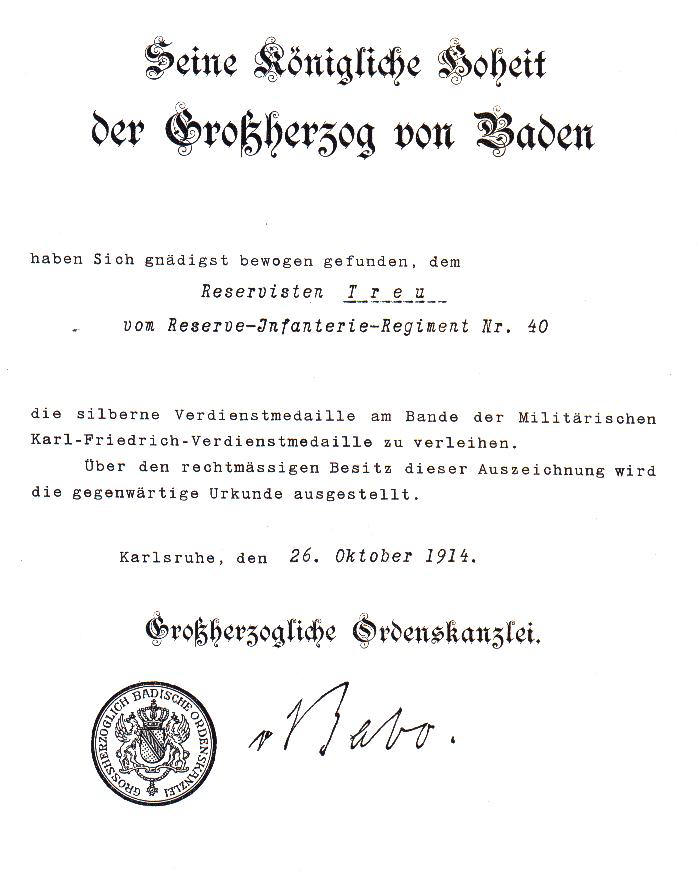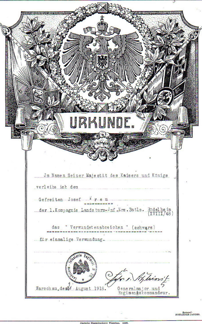 Am 18.04.1914 tritt Josef Treu zur Landwehr des 1. Aufgebotes über. Nach