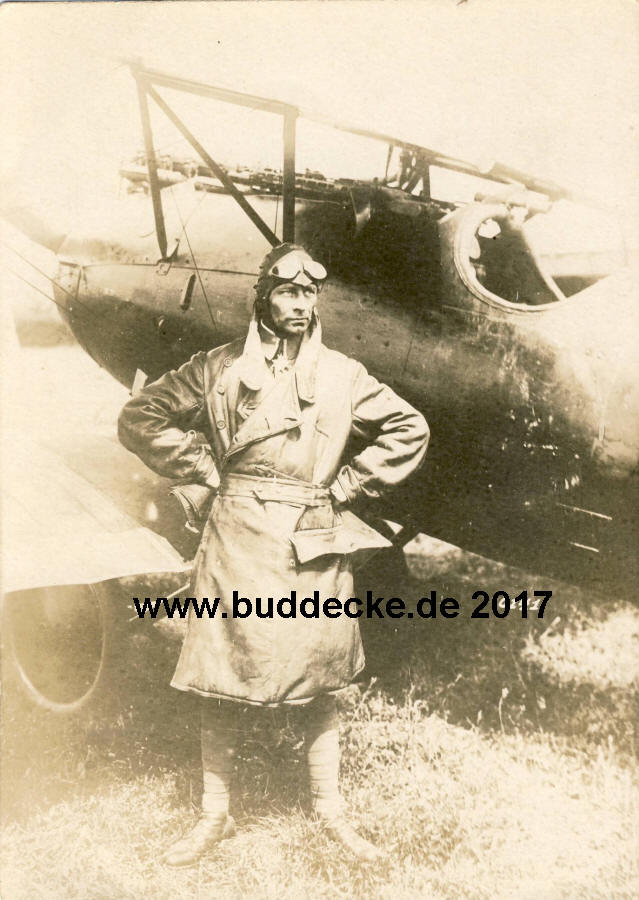 Jagdgruppenführer Eduard Ritter von Schleich vor seinem Jagdflugzeug |
