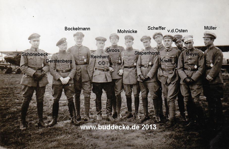 Unter ihnen der Staffelführer Oberleutnant Wilhelm Reinhard. Von links