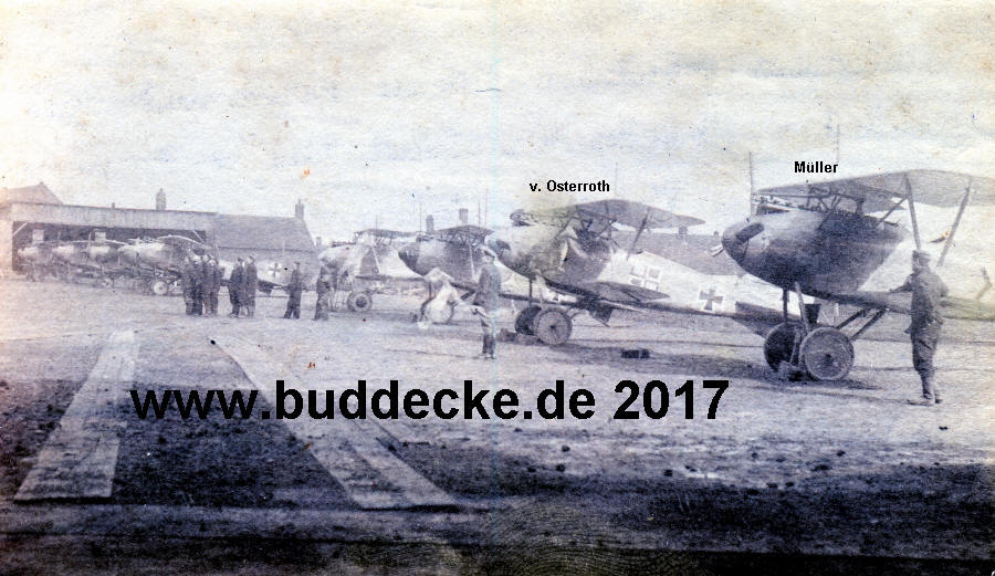 Ganz rechts die Albatros D III des OzbV Leutnant Oskar Müller,