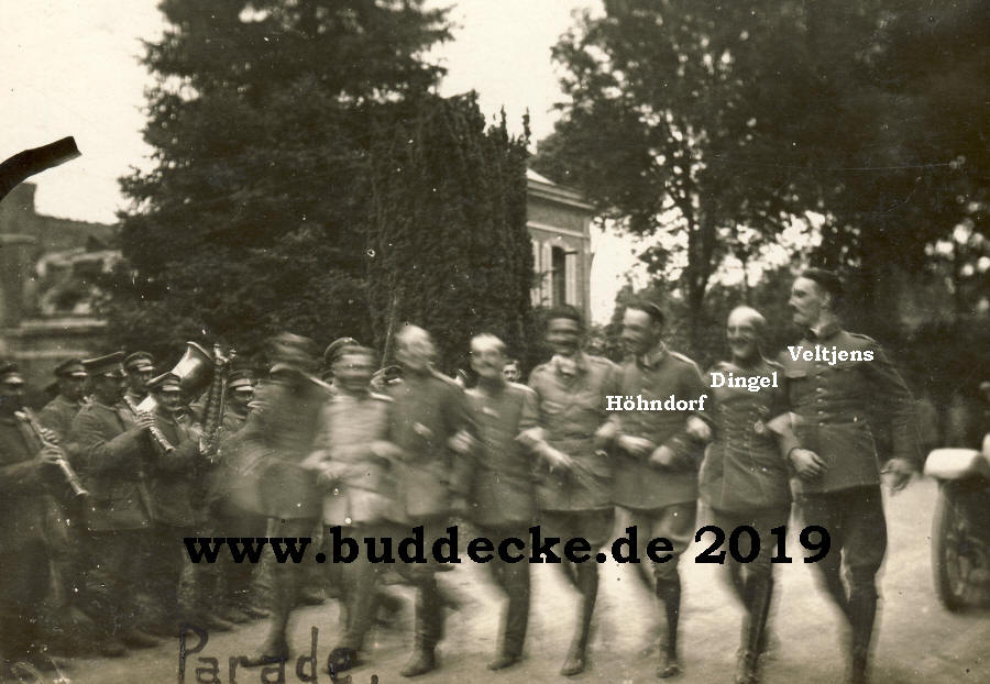 Schloss La-Neuville. Parade der Flugzeugführer der Jasta 14.