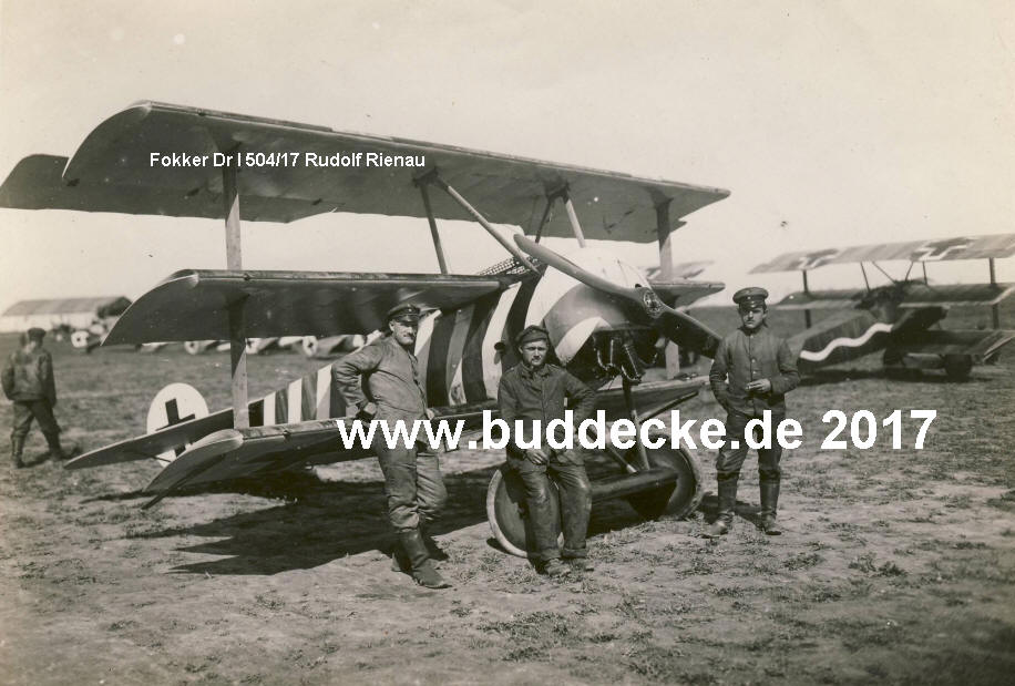 Im Vordergrund der Fokker Dreidecker (Dr I 504/17) des Leutnants