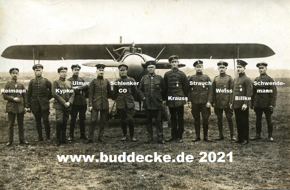 1917. V.l.n.r.: Vfw. Ludwig Reimann, ?, Lt. Walter Kypke, Lt. Werner