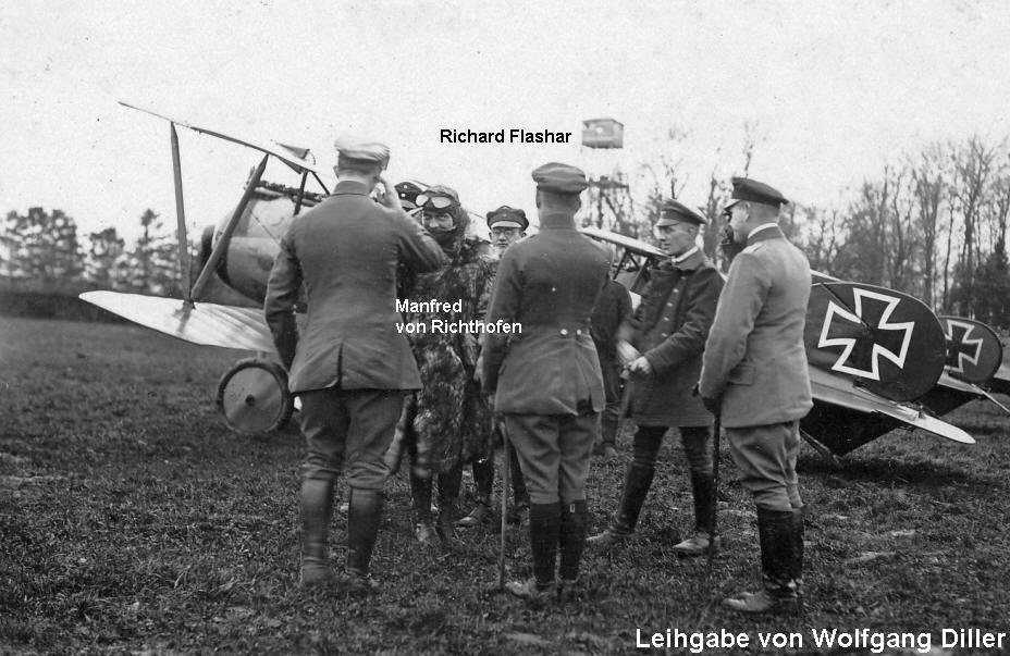 Hinter Richthofen der Staffelführer der Jasta 5, Oberleutnant Richard