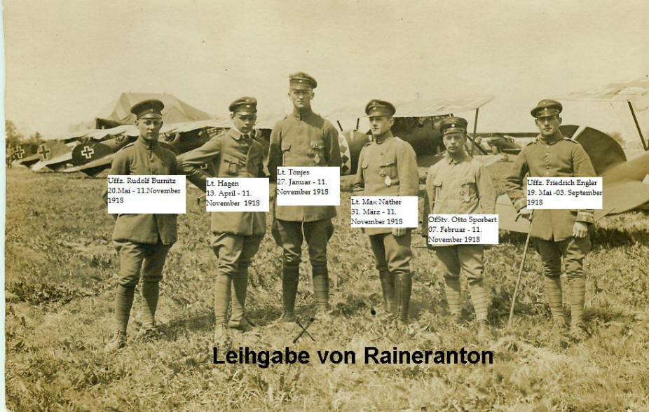 Piloten der Jagdstaffel 62. Foto vom Juni 1918.