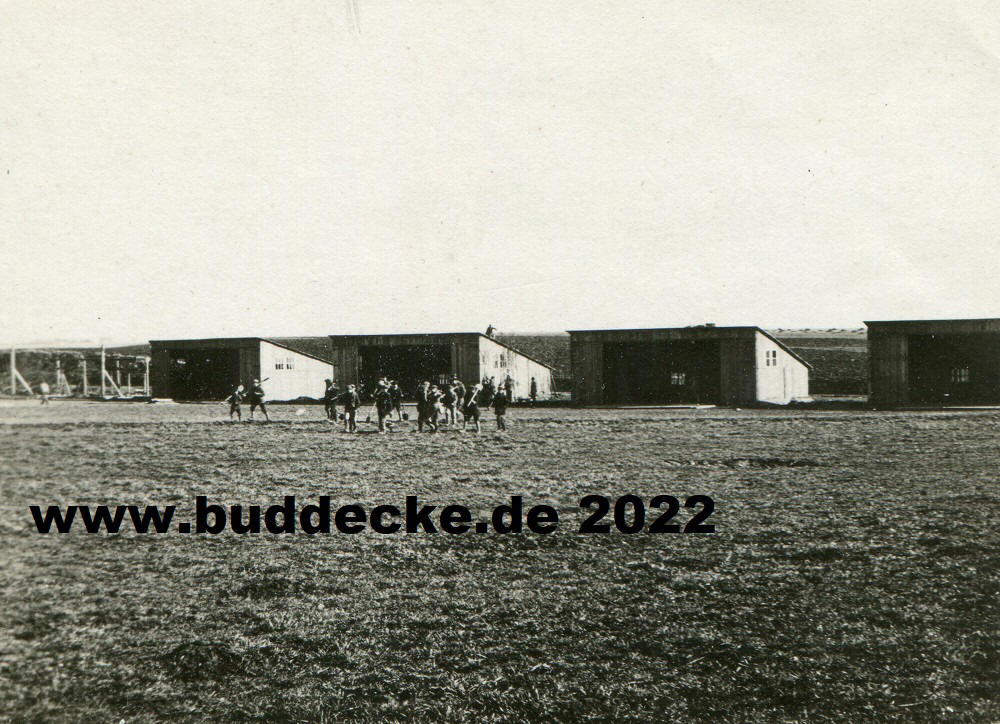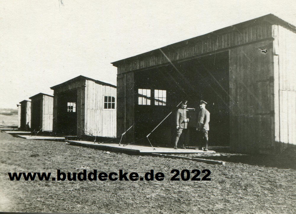 März 1918: Flugplatz mit Hallen, O.z.b.V. Lt. Philipp Kirschenlohr