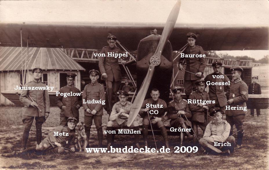 Fokker D.VII Ede = Leutnant Fritz Oppenhorst (P) 1. v. r.: Fokker