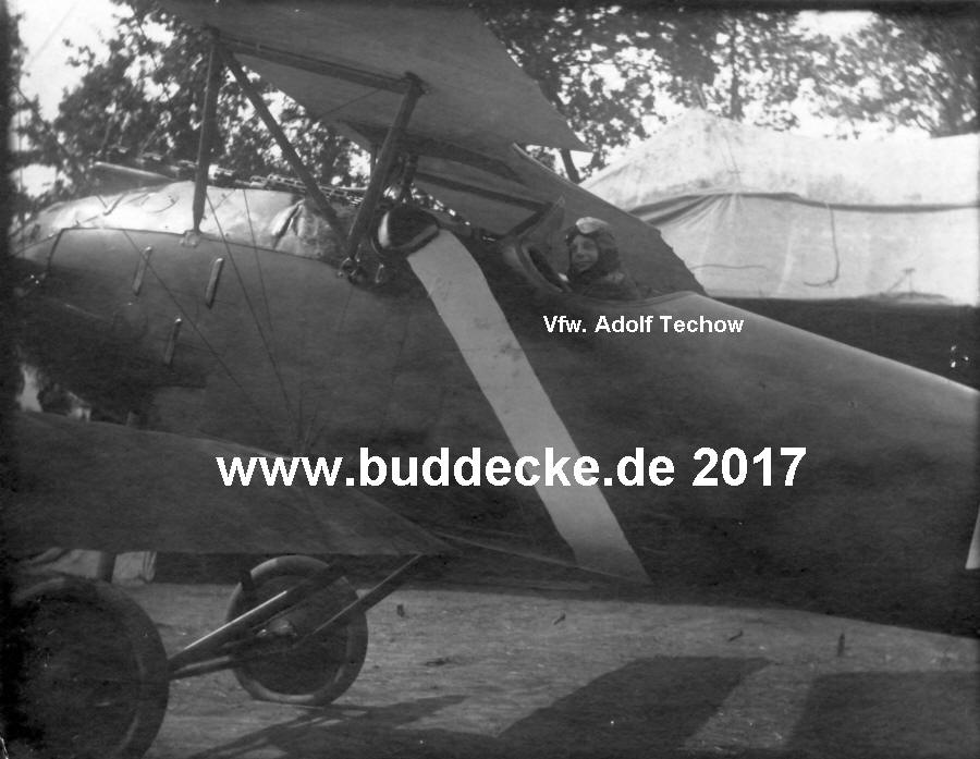 Obiges Foto zeigt Vizefeldwebel Adolf Techow in seinem Flugzeug