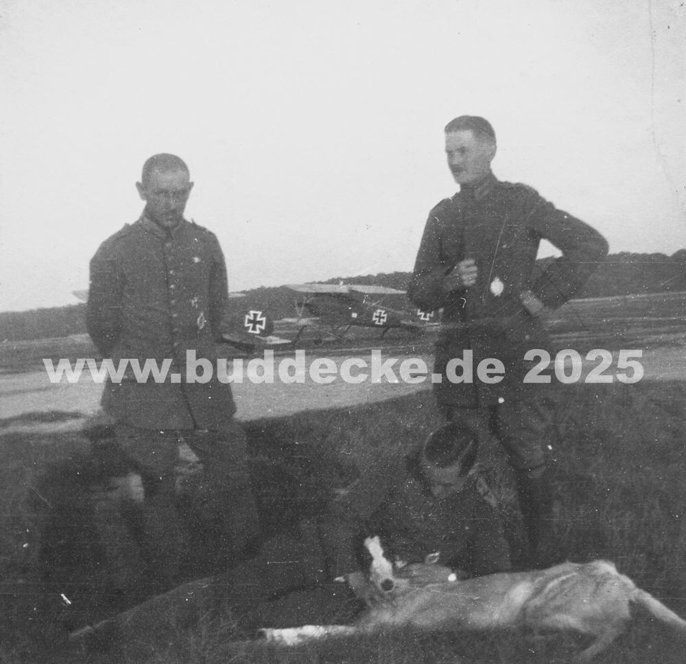 Im Hintergrund ihre Kampfeinsitzer Typ Albatros D.III. Erkannt wurde