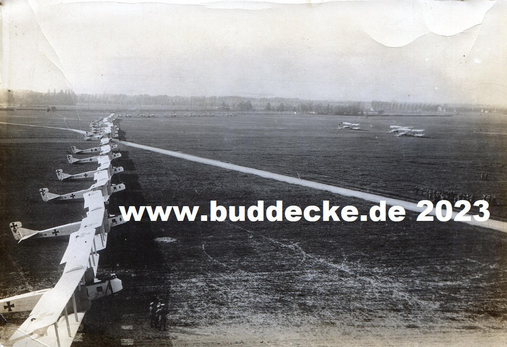 Paradeaufstellung der Gotha Bomber auf dem Flugplatz Sint-Denijs-Westrem