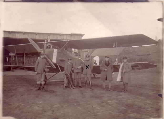Werkmeister, Flugzeugwarte und Flugzeugbesatzung vor Flugzeug Typ Halberstadt Cl. II.